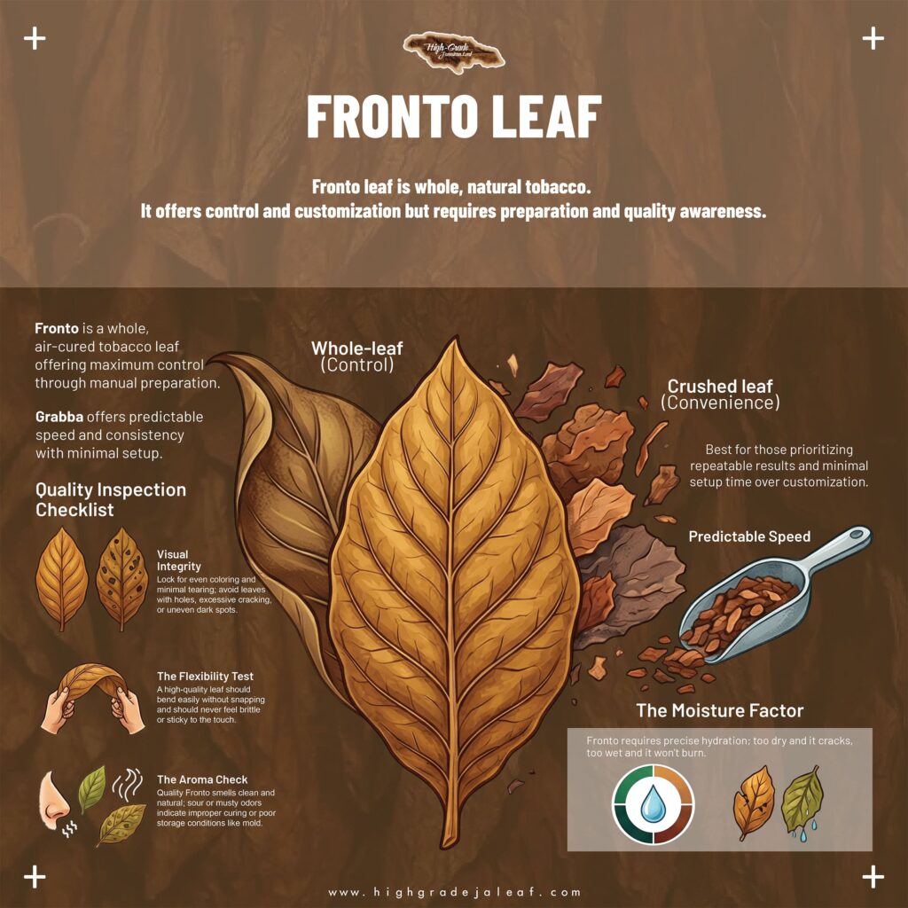 Fronto leaf is whole, natural tobacco. It gives you maximum control over flavor, strength, and burn—but only if you’re willing to prepare it. If you want convenience, grabba usually wins. If you want control, fronto leaf is the tool.