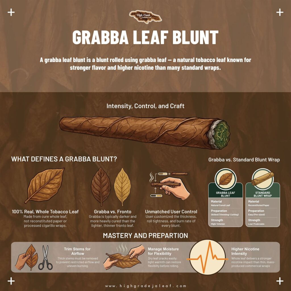 A grabba leaf blunt is made from whole cured tobacco leaf. Not reconstituted paper. Not flavored cigarillo wraps. Real leaf. That changes strength, burn rate, and preparation.