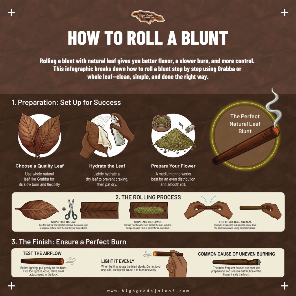 The leaf is the foundation. If the leaf is low quality, the blunt won’t smoke well—no matter how good your flower is.